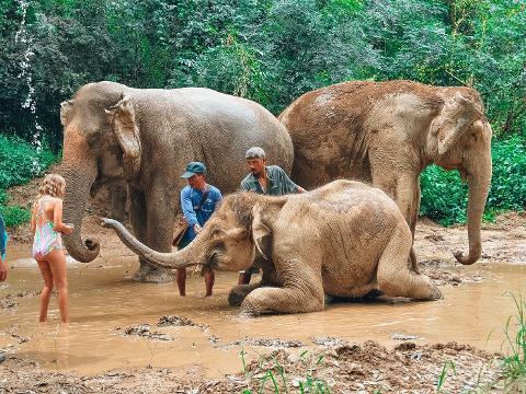 - Walk with the elephants to the river and bathe the elephants.