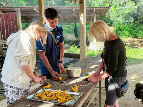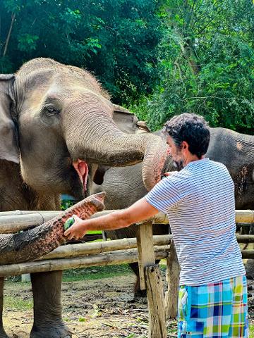 -prepare food for the elephants and feeding them.